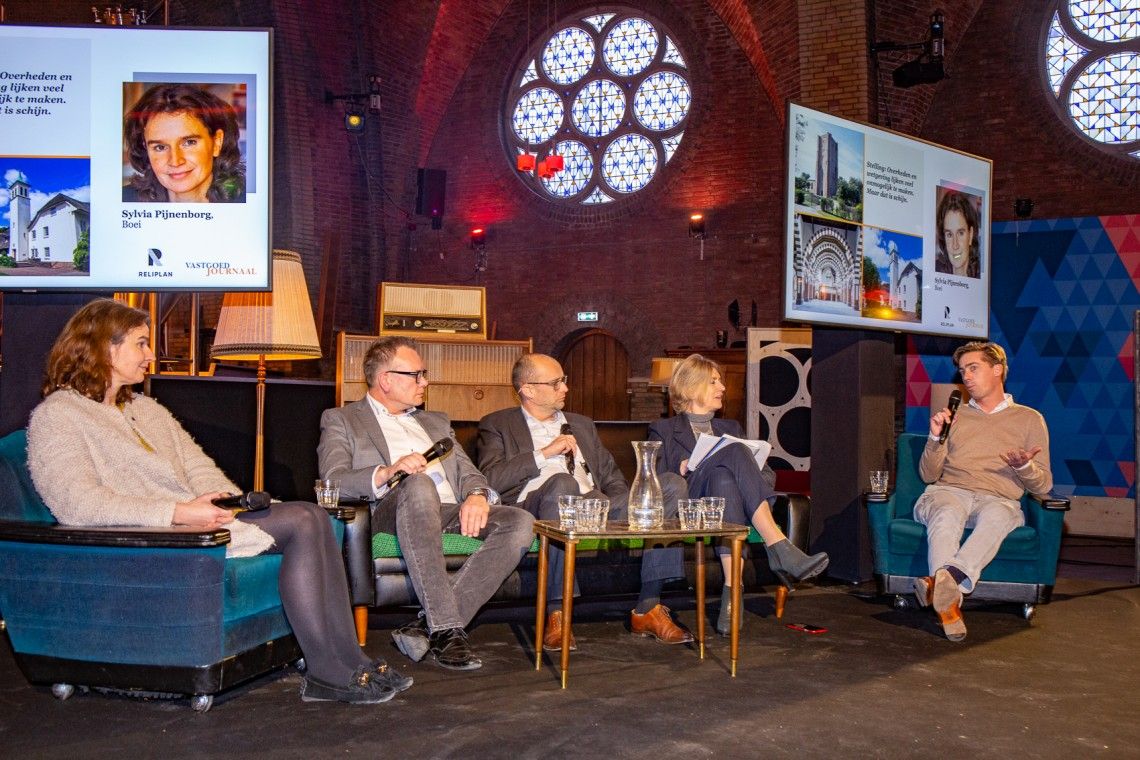 De dag werd afgesloten met een forumdiscussie geleid door dagvoorzitter Jacqueline van de Sande samen met Erwin van der Laan, partner ANNAkerk Amstelveen, Michiel van Putten, oprichter en bestuurder Wonen bij September en Sylvia Pijnenborg van BOEi en David van Duinen van Reliplan. Het panel was verdeeld over de effectiviteit van de kerkenvisies.
