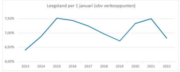 De reden dat de leegstand daalt is het feit dat in 2021 bijna 2.000 panden uit de voorraad zijn onttrokken, een ongekend groot aantal. Het is in veel gevallen niet te achterhalen wat de nieuwe functie van een pand is, maar in de meeste gevallen lijkt dat een woning te zijn. Dat lijkt dan ook de voornaamste verklaring voor de afnemende leegstand: de overspannen woningmarkt.