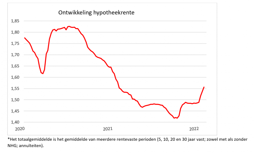 In eerste maand van 2022 recordaantal verhogingen hypotheekrente