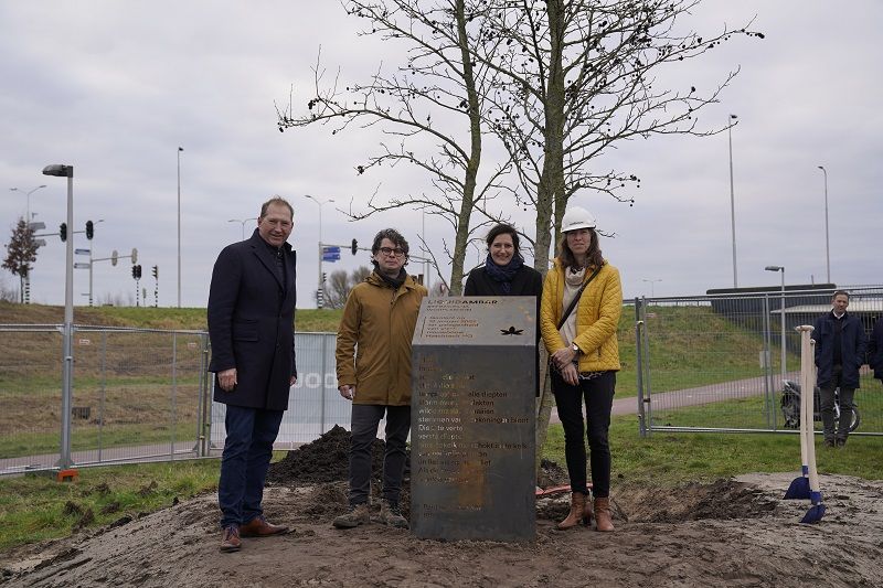 Om het natuurinclusieve karakter van de ontwikkeling te benadrukken werd symbolisch een boom geplant.