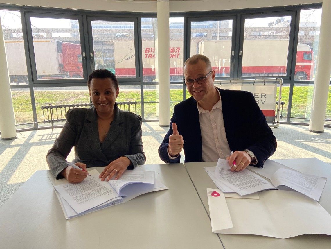 Monique Brewster, directeur-bestuurder van Woonforte en Erwin Vergeer van Vergeer Bouw uit Reeuwijk