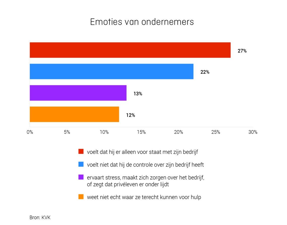 Ook emotioneel heeft de coronaperiode nog steeds invloed. Ruim een kwart van de ondernemers geeft aan dat ze het gevoel hebben er alleen voor te staan met het bedrijf. De situatie van de onderneming heeft bij 13% ook impact op het privéleven of leidt tot stress en zorgen.