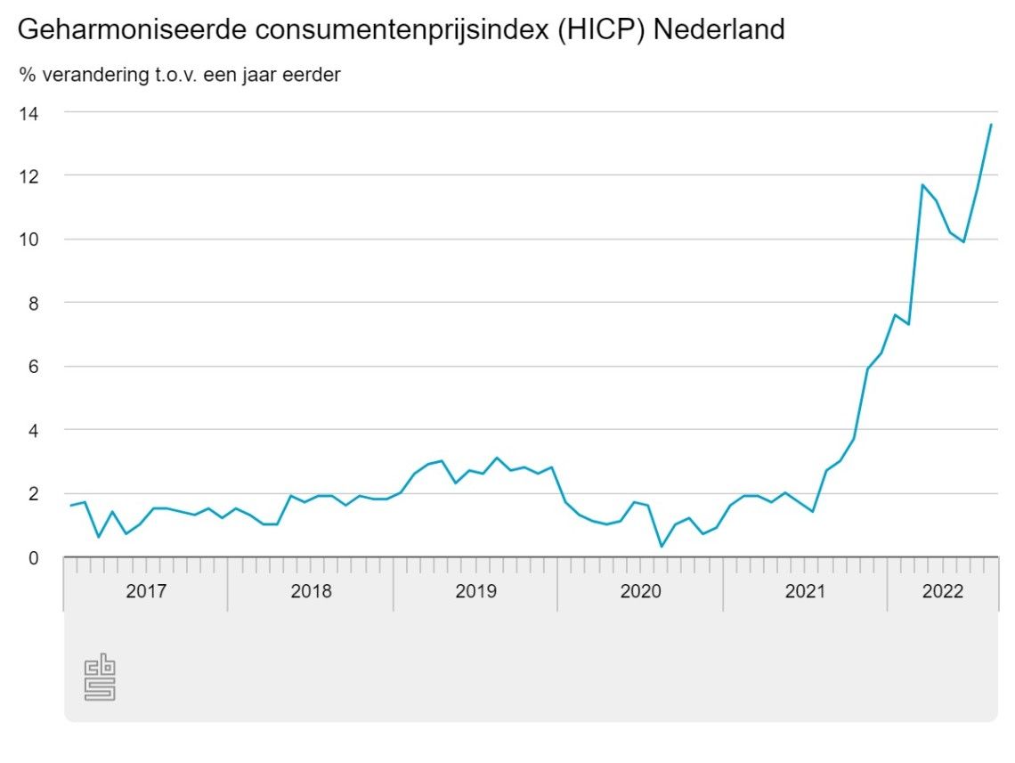 Inflatie Nederland in augustus naar 13,6%