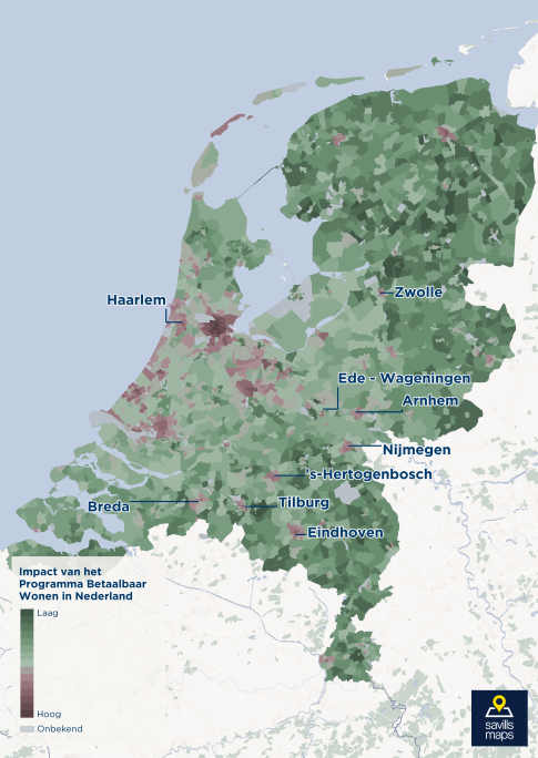 Ronald Koemans, Director Residential Investment bij Savills in Nederland, vult aan: “Wat we met dit onderzoek willen aantonen, is dat het model in theorie inderdaad zou kunnen leiden tot lagere huurprijzen, maar dat het Programma voorbijgaat aan het belangrijkste aspect van de vastgoedpraktijk; de historische locatie theorieën. Locatie maakt nu, versleuteld in de WOZ-waarde, slechts beperkt onderdeel uit van het puntenstelsel. Hiermee bewerkstellig je dat een woning in Amsterdam wellicht dichterbij de prijs komt te liggen van een woning in Dronten, maar ook dat het verschil tussen een woning in Amsterdam Centrum en Nieuw-West verdwijnt. Hierdoor ontstaat er overvraag voor de nu al meest gewilde woningen en zal die woning dus juist niet bereikbaarder worden, zeker omdat de verhuurder nog altijd zelf kan beslissen aan wie hij/zij gaat verhuren.”