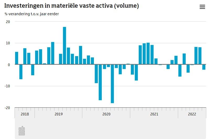 De cijfers zijn niet gecorrigeerd voor werkdagen. Juli 2022 had een werkdag minder dan juli 2021. Volgens de CBS Investeringsradar zijn de omstandigheden voor de investeringen in september minder gunstig dan in juli.