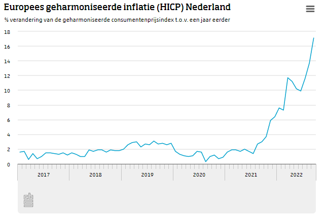 Inflatie dit jaar nog nooit zo hoog: 17,1%
