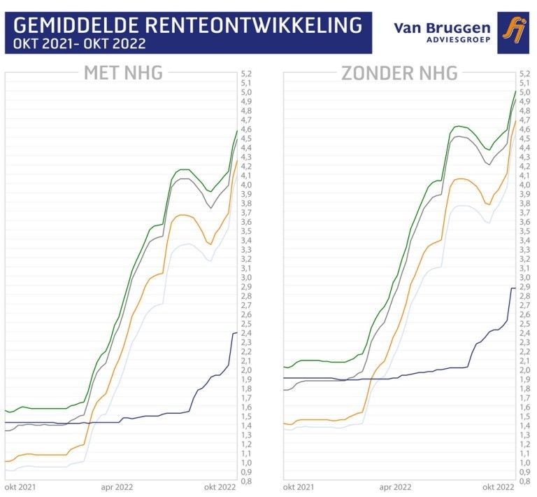 Wel waren er een aantal geldverstrekkers die besloten de hypotheekrentes deze week ongewijzigd te laten, omdat de marktrentes aan het begin van de week even pas op de plaats leken te maken. Nu de marktrentes toch weer hoger geëindigd zijn dan de week ervoor lijkt een verdere stijging van de hypotheekrentes ook te verwachten, aldus de Van Bruggen Adviesgroep.