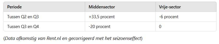 In data van Rent.nl over het aanbod van de huurmarkt, zitten ongeveer 2.250 advertenties voor huurwoningen in Leiden in de periode tussen 16 februari 2024 en 2 januari 2025. Bart Kappenburg van Rent zegt het volgende: 'Tussen het tweede en derde kwartaal zagen we een afname in aanbod van vrije sectorhuizen.' Dat kwam doordat sommige woningen in het nieuwe puntenstelsel in de middensector terechtkwamen of omdat ze verkocht werden. 'Tussen het derde en vierde kwartaal van 2024 zien we dat ook het aanbod in de middensector afneemt.' In Leiden neemt dat aanbod, rekening houdend met het seizoenseffecten, met twintig procent af. 'Dat is in lijn met wat we landelijk zien.'