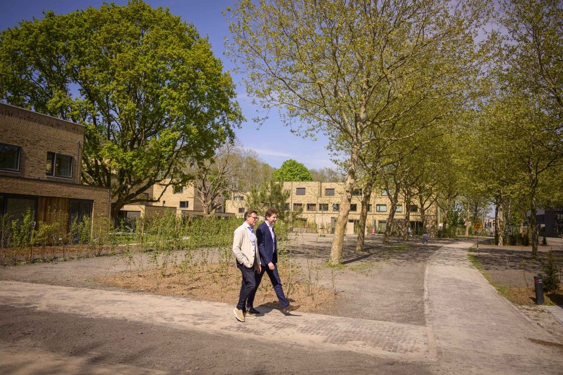 Het gesprek met Vastgoedjournaal vindt plaat in een royale drie-laagse Flow-woning op landgoed Wickevoort in Cruquius, een plaatsje in de gemeente Haarlemmermeer. Daar werkt AM samen met diverse partijen aan de transformatie van het instellingsterrein van SEIN naar een groene, duurzame en inclusieve woonwijk. “Een Flow-woning past uitermate goed bij het duurzame karakter van het nieuwe landgoed”, zo zegt Ter Beek. “Hier wonen straks mensen in een gebied met een geschiedenis, in een landschap met volgroeide bomen, op een plek waar vogelgeluiden klinken. Op Wickevoort wordt ook nog steeds traditioneel gebouwd, maar een duurzaam gebouwde woning past beter bij de inclusieve leefomgeving die we hier realiseren.”